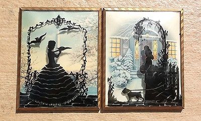 Title (ebay affiliate link): Vintage SET of 2 Reverse Paint Silhouette Convex Bubble Glass 4 x 5 PICTURES NR