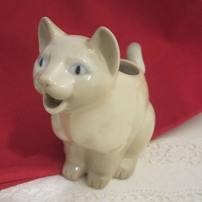 Vintage Figural Siamese Cat or Kitten Cream Pitcher with Blue Eyes Creamer Cute!