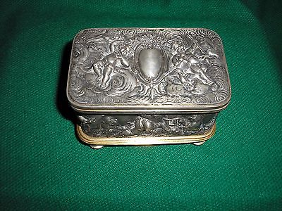 Unique Antique Cherubs Figural Cast Metel Jewel Case Pewter / Brass ?