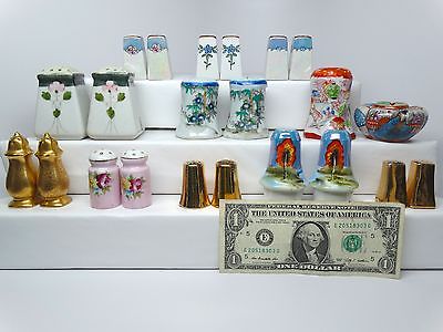 Huge Vintage SALT PEPPER SHAKER LOT Gilt GOLD Japan HAND PAINTED Lusterware VTG