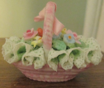 Title (ebay affiliate link): Irish Dresden Lace Flower Basket Porcelain Shamrock MV Blue Crown Mark Ireland
