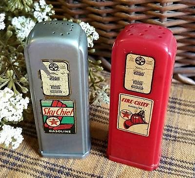 VINTAGE PLASTIC GAS PUMPS SALT & PEPPER SHAKERS COLLECTABLE
