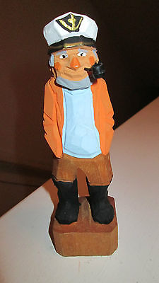 Vintage 6" Hand Carved Painted Wood NAUTICAL Sailor Fisherman Sea Captain