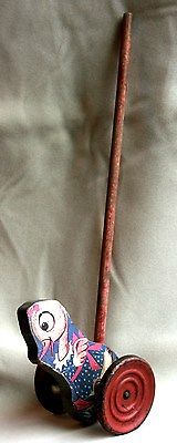 Title (ebay affiliate link): ANTIQUE CHILDREN'S PUSH TOY; ALL ORIGINAL, WOOD & METAL DUCK