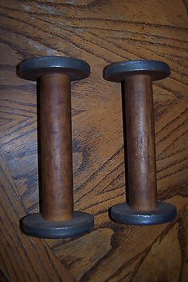 2 SMALL VINTAGE WOOD TEXTILE MILL SPOOLS BOBBINS IN VERY GOOD CONDITION 8" TALL