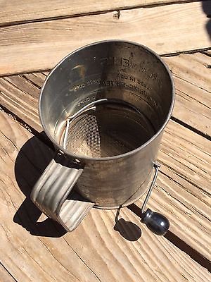 metal sifter gold antique seed flour rustic tin can BROMWELLS measuring cup rare