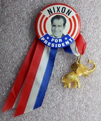 Title (ebay affiliate link): Richard Nixon - For President Pinback Button w/Elephant Charm and Ribbon *RARE*