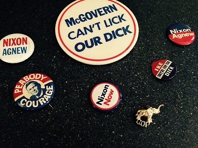 Title (ebay affiliate link): Lot of 1972 GEORGE McGOVERN CAN'T LICK OUR DICK, RICHARD NIXON PIN