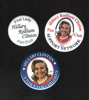 Title (ebay affiliate link): 3 different early HILLARY CLINTON Fan Club related buttons First Lady