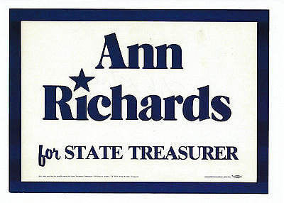 Title (ebay affiliate link): Ann Richards Texas TX campaign sign prior to running for Governor 1990