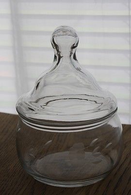 Title (ebay affiliate link): Vtg Apothecary Clear Crystal Glass Jar W/Lid Wedding Display Buffet Display