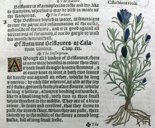 Title (ebay affiliate link): 1578 Handcolored 4 WOODCUTS - BELLFLOWERS - Herbal Borcht LEAF ENGLISH EDN