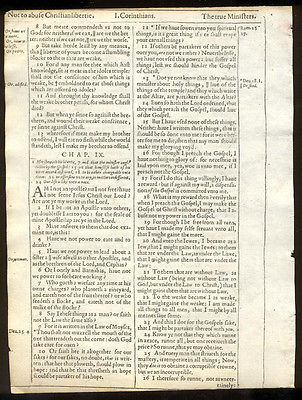 1613 King James Roman Letter Bible Leaf/RARE/1ST CORINTHIANS 7-9!