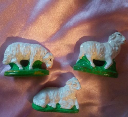 Title (ebay affiliate link): LOT OF 3 VINTAGE GERMANY COMPOSITION PAPER MACHE NATIVITY SHEEP 3" LONG