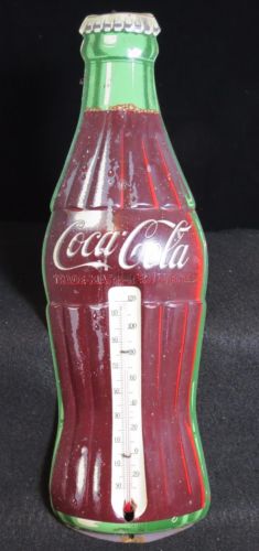 Title (ebay affiliate link): c. 1950's Coca-Cola Coke Tin Litho Advertising Thermometer 16" Tall