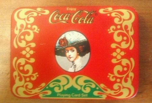 Title (ebay affiliate link): Vintage Coca cola Tin with two Decks of cards, score pad, pencil mint Condition