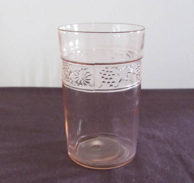 Vintage Pink Depression Glass Tumbler Band Grapes