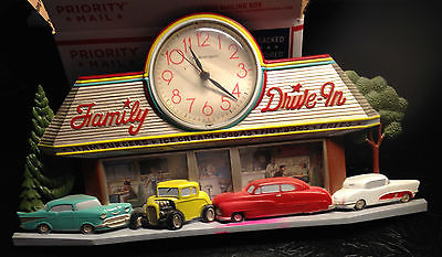 VINTAGE COCA COLA FAMILY DRIVE IN DINER COKE CLOCK 1950'S**HOT ROD**3-D