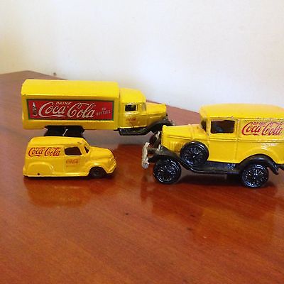LOT OF 3 COCA COLA HEAVY DIE CAST TRUCKS DELIVERY VAN TRACTOR TRAILER