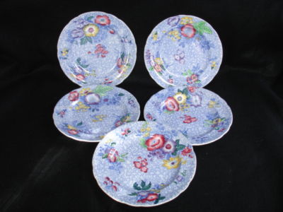 Copeland Spode 5 luncheon 9in plates Wild Flower blue
