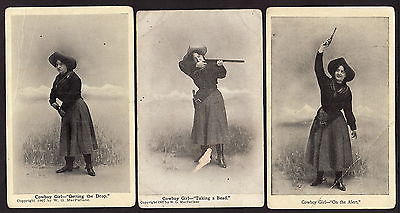 Cowboy Girl Circa 1907 Three cards Not in best condition
