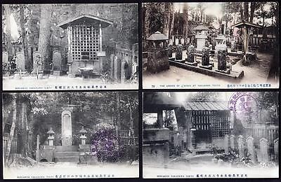Lot of 4 - Tokyo c.1910's Sengakuji Temple & Shrine of the 47 Ronin - Samurai
