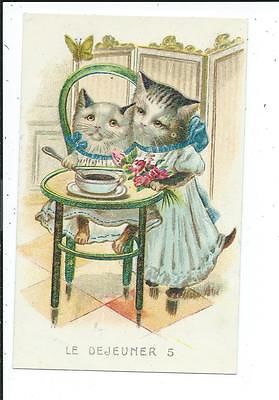 Postcard Fantasy Dressed Cat & Kitten Eating "Le Dejeuner 5"