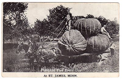ANTIQUE 1910 COMIC MEN RIDE GIANT PUMPKINS ST. JAMES MINNESOTA POSTCARD