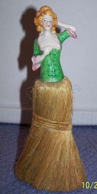 ANTIQUE PORCELAIN HALF DOLL BRUSH WHISK BROOM - JAPAN
