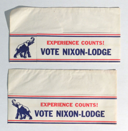 Title (ebay affiliate link): T583. VINTAGE: TWO Experience Counts! VOTE NIXON - LODGE Paper Hat (1960)