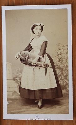 CDV Victorian Musician Holding Lute Bodied Hurdy Gurdy c1860s by Cremiere Paris