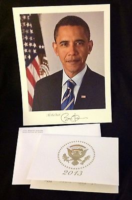 RARE WHITE HOUSE CHRISTMAS CARD 2013 + PHOTO PRES OBAMA SIGNED BLANK ENVELOPE