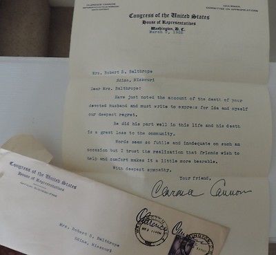 Title (ebay affiliate link): 1955 Clarence Cannon Signed Letter & Envelope re: passing Edina Missouri