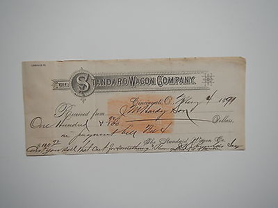 Antique Document 1891 The Standard Wagon Company Cincinnati Ohio Money Paper OH