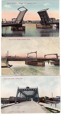 3 ANTIQUE 1907 GENESSE AVE. & COURT STREET BRIDGE SAGINAW MICHIGAN POSTCARD