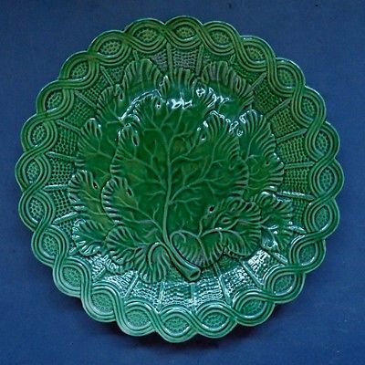 VICTORIAN GREEN GLAZED MAJOLICA PLATE (2) - LATE 19TH CENTURY