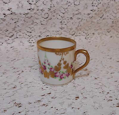 Vintage Small Tea Saki Porcelain Cup w/Rose Buds & Gold Accents