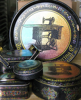 New Bristol Ware Singer Sewing Machine Tins Tray Various Sizes Lot of 5