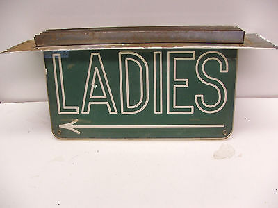 VINTAGE LADIES GREEN/WHITE CEILING RESTROOM SIGN GAS STATION 2 SIDED PLEXIGLASS