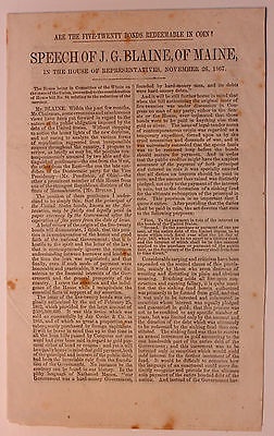 Title (ebay affiliate link): Original 1867 Speech of James G. Blaine of Maine Arguing Hard Money for USA