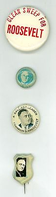 4 Vintage 1940s President FDR Roosevelt Political Clean Sweep Pinback Buttons