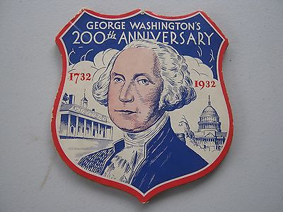 1932 GEORGE WASHINGTON 200TH ANNIVERSARY CARDBOARD DOUBLE SIDED PLAQUE PRESIDENT