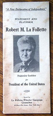 Title (ebay affiliate link): 1924 Robert M. La Follette Candidate For President, Statement & Platform Booklet