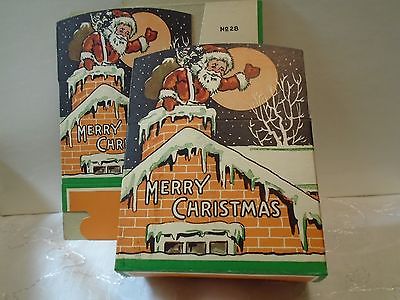 Santa Claus On Rooftop 1930s. 2 Cardboard Candy Boxes Christmas Ornaments U.S.A.