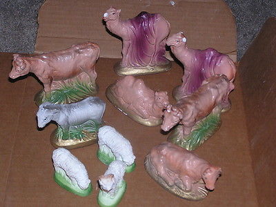 Title (ebay affiliate link): 19 Vintage Chalkware Nativity Pieces Animals & People Most Cost $.10