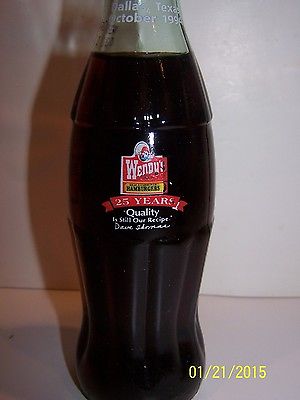 Title (ebay affiliate link): WENDY'S 25 YEARS COCA COLA BOTTLE - DALLAS TX.- DAVE THOMAS