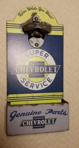Title (ebay affiliate link): Vintage Super Chevrolet Service Wall Mount Bottle Opener With Cap Catch Box