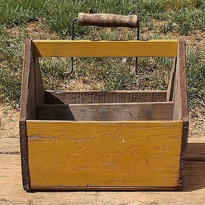 Title (ebay affiliate link): Vintage Coca Cola Wood 6 PACK BOTTLE CARRIER Original Yellow Paint Graphics VGC