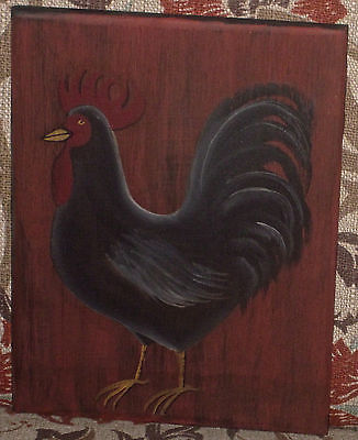 *~*PRIMITIVE*~* HP FOLK ART PRIM CHICKEN/ROOSTER *~* BOARD