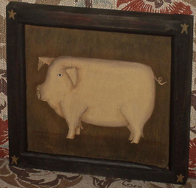 *~*PRIMITIVE*~* HP FOLK ART PRIM PIG *~* SM. DOOR PANEL